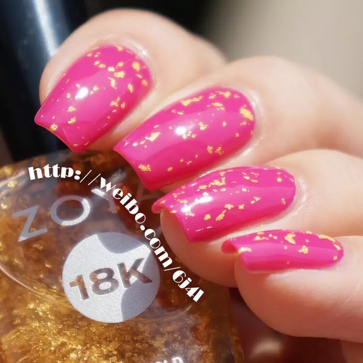 ZOYA这瓶金箔顶油是真·18K金啊。有一种漫不经心地“我有钱”感。底油色号:Nicole by OPI, NI G12