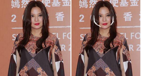 大幂幂也是,虽然这有点侧分,但是道理是一样的,左图中,两边厚厚的刘海遮盖的严严实实,却让人不由得脑补出一张大方脸。还不如右边这样侧分束发来的显脸小~