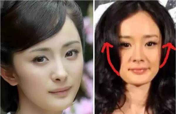 赵薇的脸就比较大,之前很喜欢中分,利用两边刘海来遮脸,虽然两边都遮住了大面积脸,但是会让人根据下巴延长线来联想她遮住的部分面积很大……知道什么叫欲盖弥彰了吧……