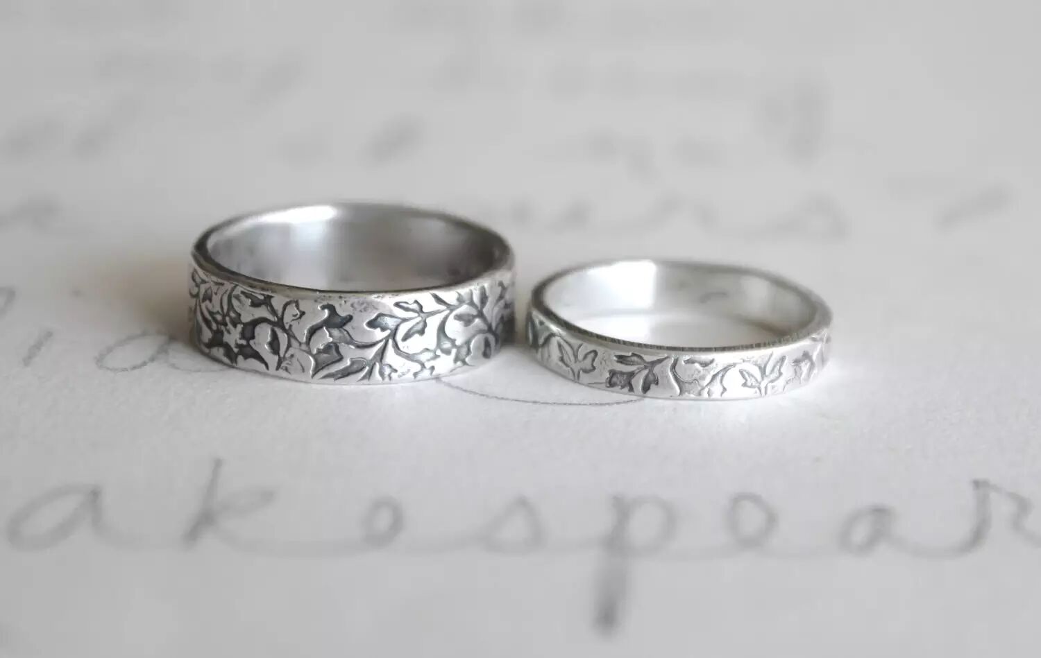 錾花银质金属圈婚戒对戒,工艺古朴文艺。图片:etsy.com