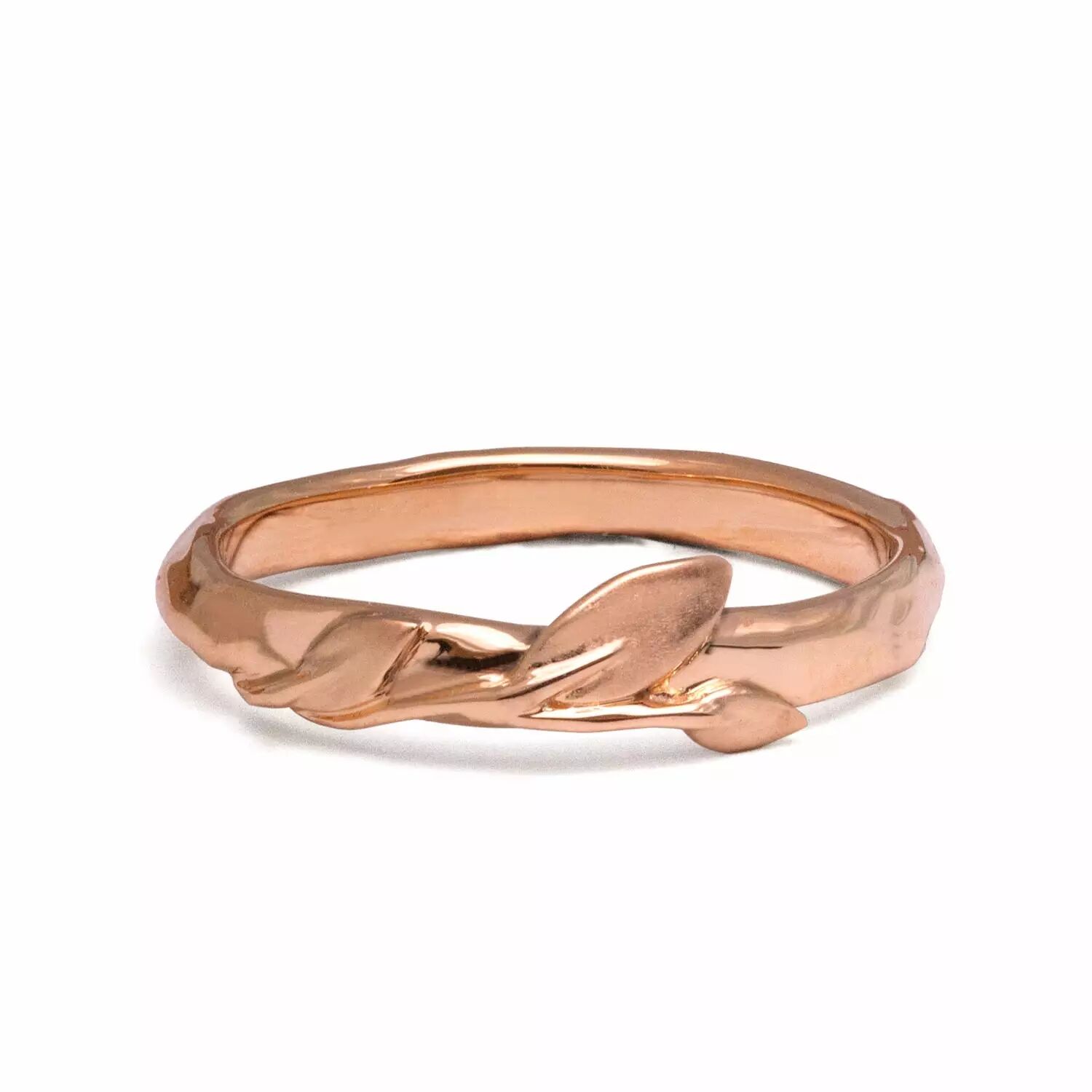 18K玫瑰金叶形装饰金属圈中性结婚戒指。图片:etsy.com