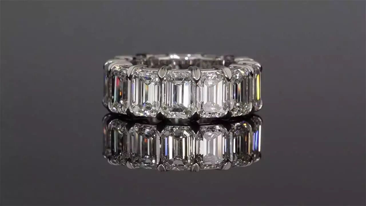 18K白金镶嵌祖母绿切钻石永久圈结婚戒指。图片:vimeocdn.com