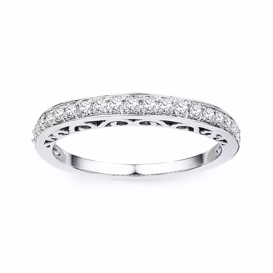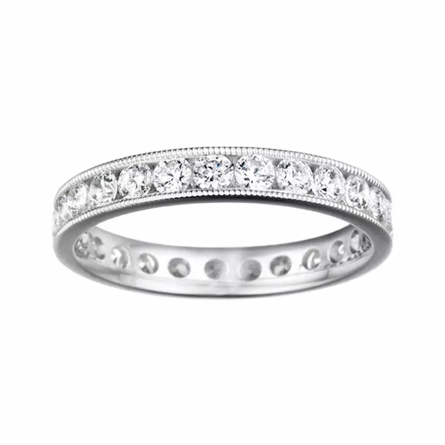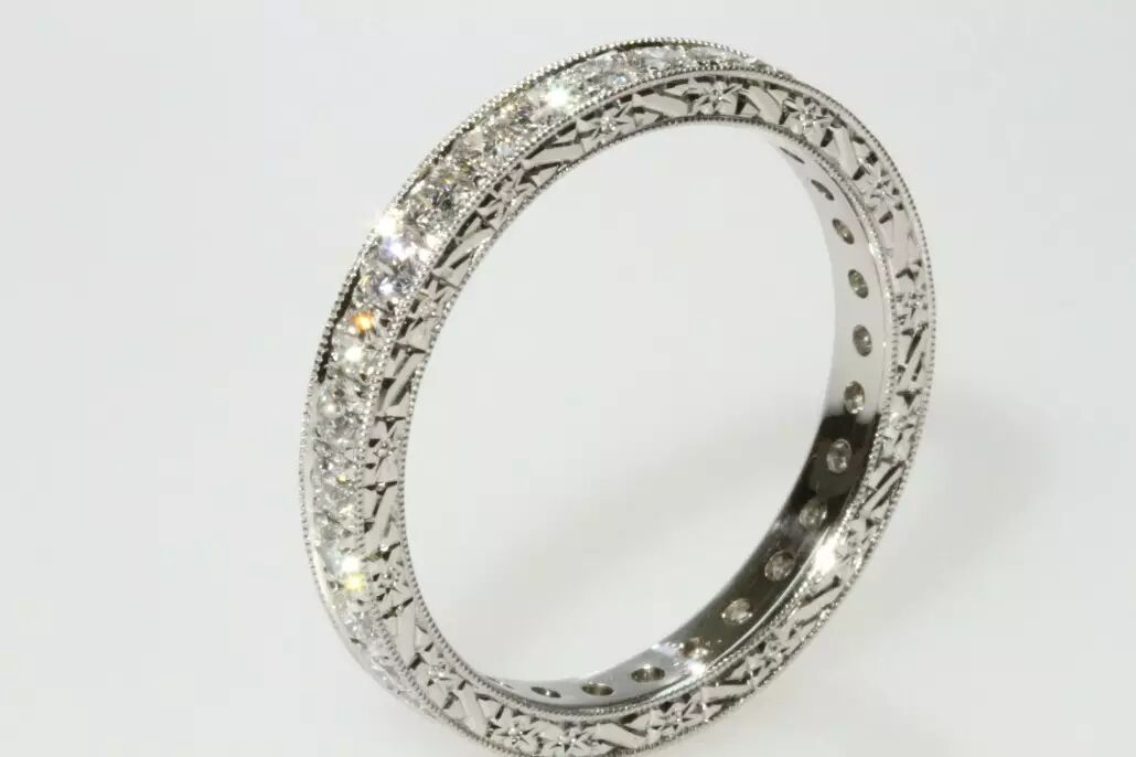 18k白金镶钻石永久圈戒指,戒指侧面有额外的雕花。图片:bostonringandgem.com