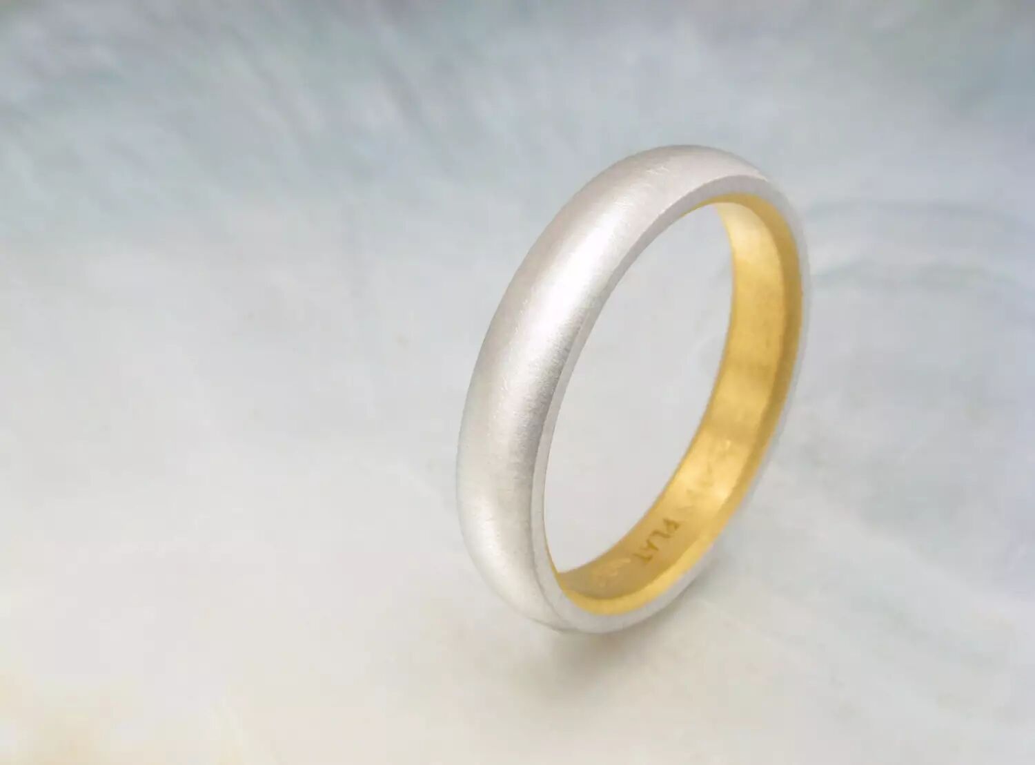 最后收官的还是一张最简单的经典金属圈婚戒,但是它的材质是950铂金内包24K黄金,给戒指融入了一种不一样的感觉。图片:etsy.com