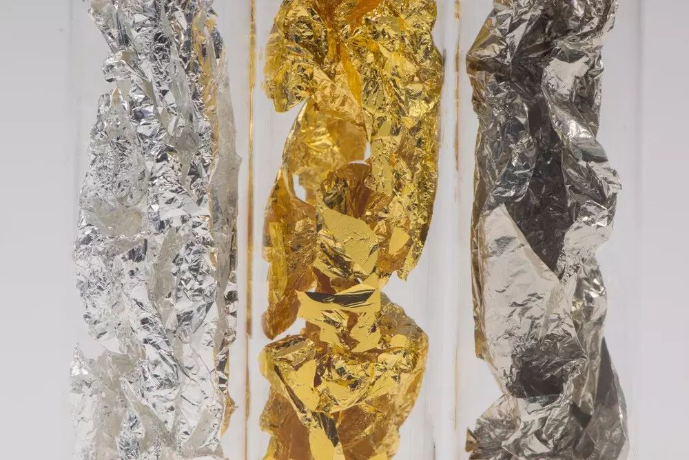 银、金、铂薄膜样品(图片从左至右)颜色的对比。图片:shutterstock.com