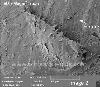 再来一张,电子显微镜下使用木推用力刮出光疗胶的照片。图片来源见水印。