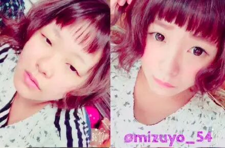 ↑推特上发表半颜照而大热的化妆高手mizuyo,整体五官底子其实很好,仅仅是改变了眼睛,整个人的氛围就变得完全不一样了。
