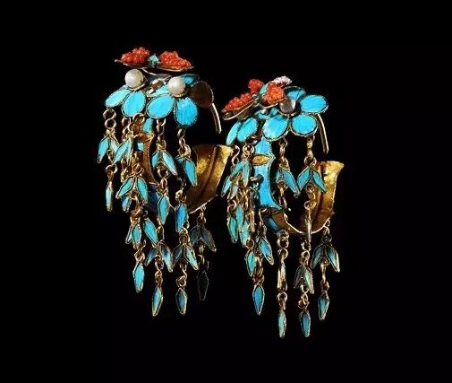 清代,金镶珠翠耳坠,故宫博物院藏