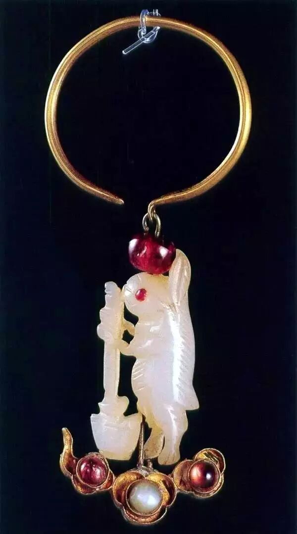 明万历,金环镶宝玉兔捣药耳环