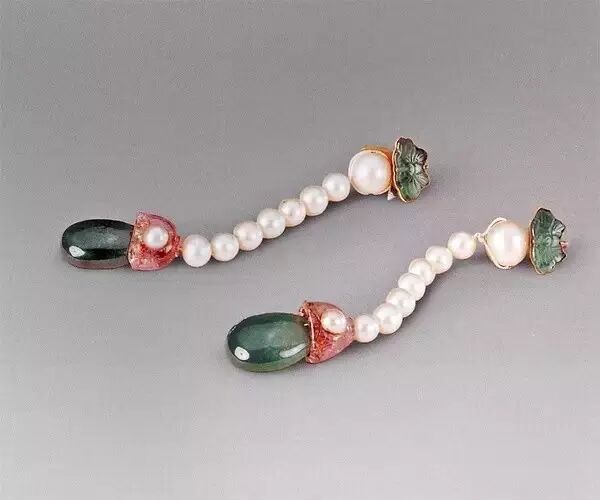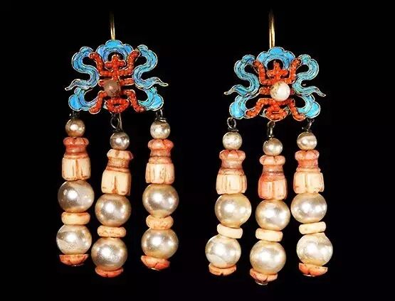 讲到清代,就要留意清代有两套系统,汉女服饰仍然沿袭明代,而旗人则有满洲的制度,体现在耳饰上就是“一耳三钳”。满洲入关后,女子正装的时候往往会在一个耳朵上连续佩戴三个甚至以上的耳饰。满洲人在耳朵上戴很多耳环在清末的记载也很常见,不过早期就是金环,后来出现了珍珠、东珠,一字排开,很是壮观!