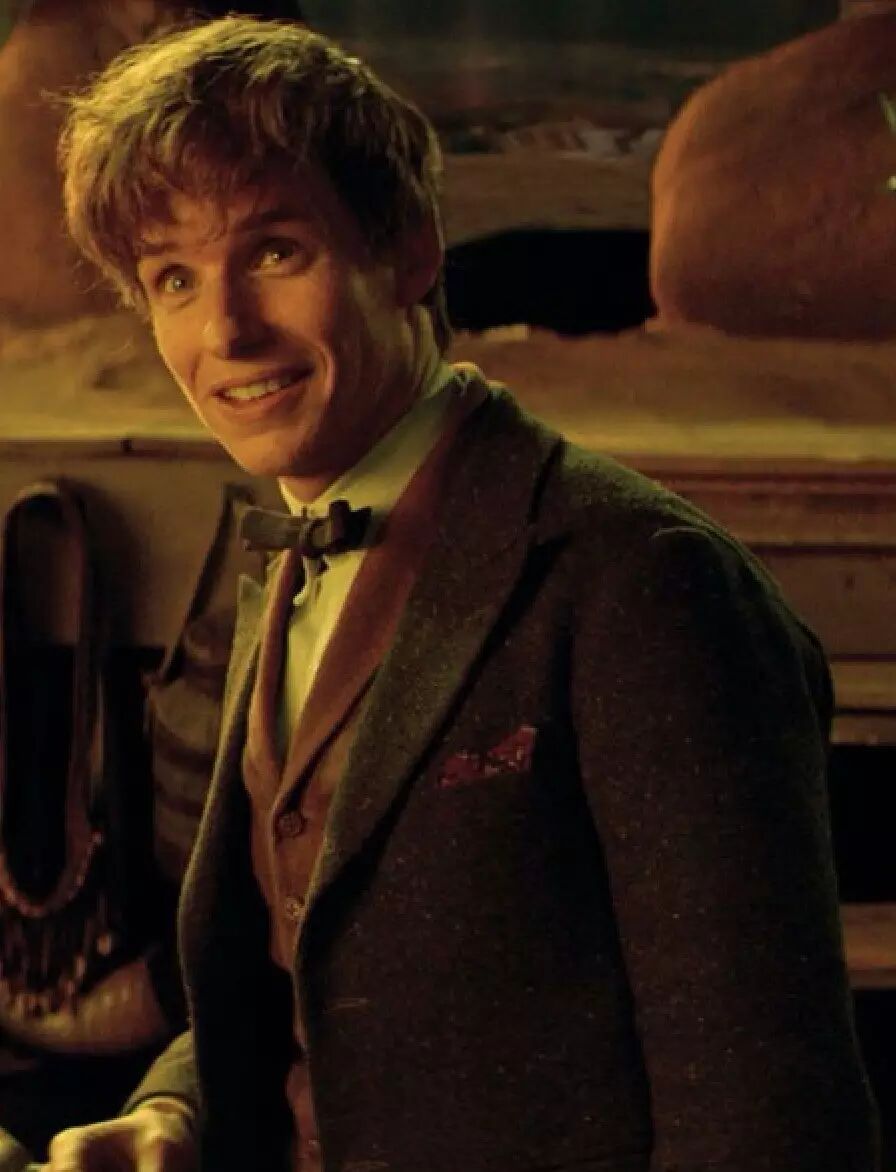一身粗呢几乎是那个年代英国各个阶层的标识性旅行装束,挡风、保暖、耐磨、耐脏,确实是最好的田野工装面料;中腰棕色的德比靴子也是很好的野外选择。作为一个奇兽研究者,即使可以随时用魔法修补清洁衣物,不大需要在意”耐脏“,但是这样一身装扮也可以轻易地融入周围的麻瓜群众,不引人注意。