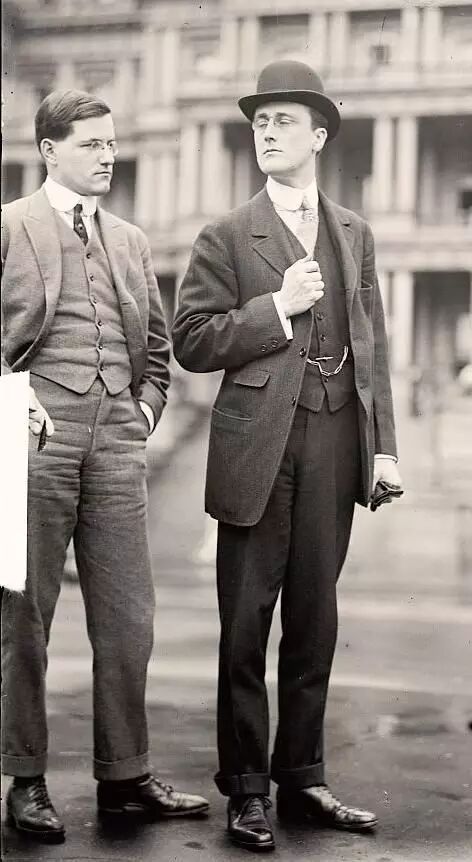 上面两张照片分别摄于 20 年代初期和末期,可以看到男装在合体度上和风格上的变化——这在那个时代的底层民众中是无法见到的。