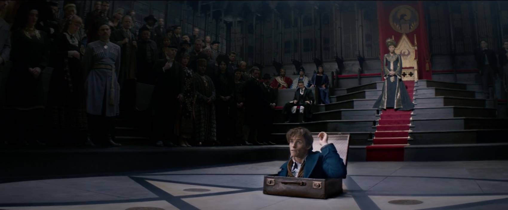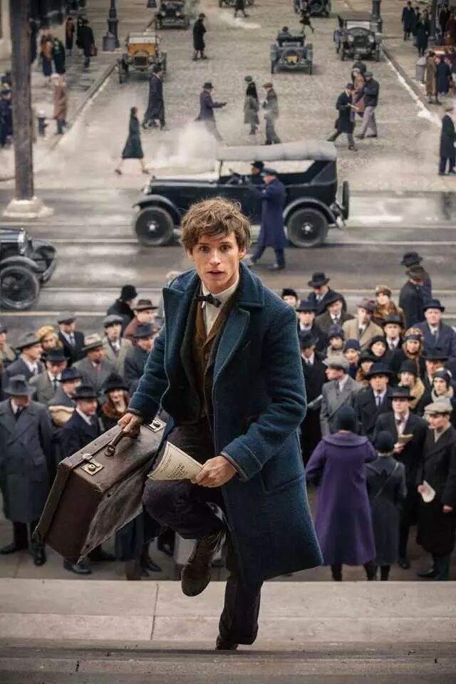 我们先来看看主角纽特·斯卡曼德。作为周游世界的神奇动物研究者,小雀斑当然不会象其他英国巫师那样出现各种不适应麻鸡——噢,不对,应该是麻瓜——服装的状况。所以当他从容步下邮轮的时候,美国海关官员理所当然的把他视为一位普通英国人。