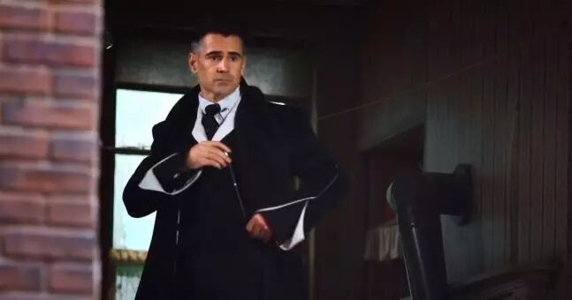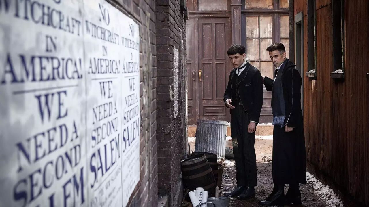 但是如果觉得这一身衣服仅仅为了凸显克雷登斯的贫困与窘迫,那就太小看本片的服装水准了。当他在纽约阴暗的小巷内和傲罗格雷夫斯窃窃私语的时候,这身衣服阴暗的色调和逼仄感,恰如其分地衬托着他命运的诡谲和莫测——没有什么比一身切合人物表面身份而同时又能展现其命运走向的装束更能体现一部电影的治装水准了。