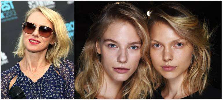 中分波波头也比较时髦且能遮脸。染发、卷起发尾等方式赋予这种经典发型新鲜的活力。
