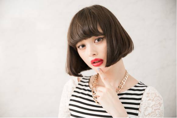 日本混血儿模特玉城Tina标志性的日系少女波波头,大概是不少妹子剪波波头的原动力。这种波波头本就是小孩子常剪的发型,天真无邪,厚厚的遮眉齐刘海和内弯的发尾遮脸效果一流,想要卖萌装嫩的少女们怎能不爱。