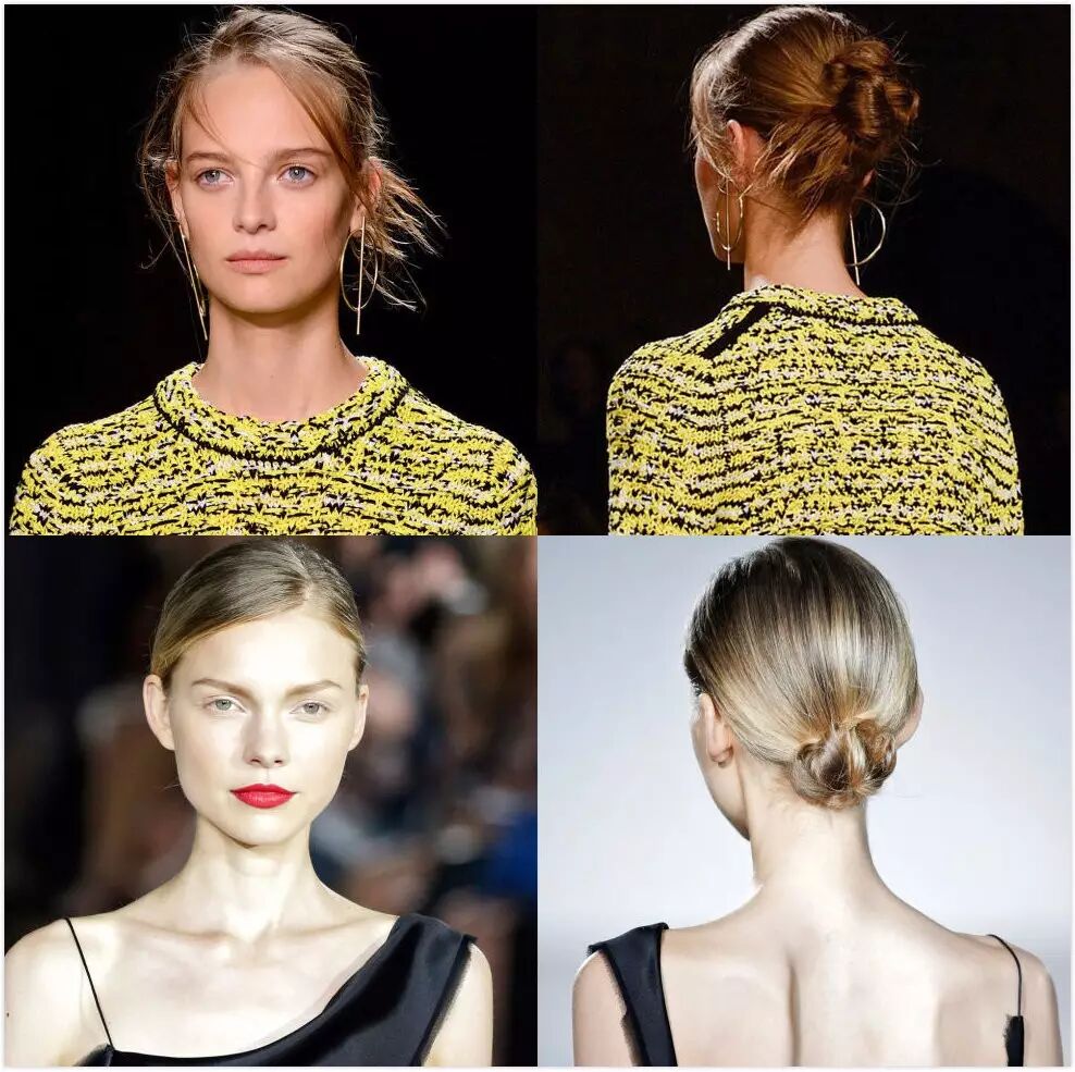 当初看到这发型,我觉得这和咱们宅家把头发随意一裹的样子没什么大区别,但是人家大牌说这很时髦,我也没办法……盘发也是技术活,样式何其多,这个就看个人的手艺和喜好了。