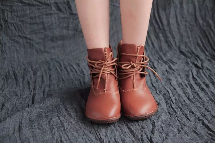 虽说绝大多数森女平日里还是会穿普通款式的鞋子,毕竟学生居多,体育课上不穿运动鞋会被骂成狗。然而有着返璞归真的价值观做基石,“手工定制”四个字,就成了森系鞋履不成文的金字招牌。可能因为手工编的草鞋实在是穿不出去,我们能在淘宝上搜到的几乎都是皮鞋,宣传图里还会辅以诚意手制的证据照片做配图:手缝的,手裁的,纯天然,不掺假。比如这样: