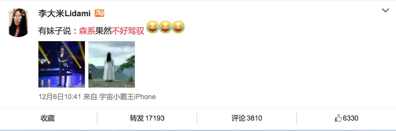 森系有多难驾驭?看看下面的这条微博你就知道了: