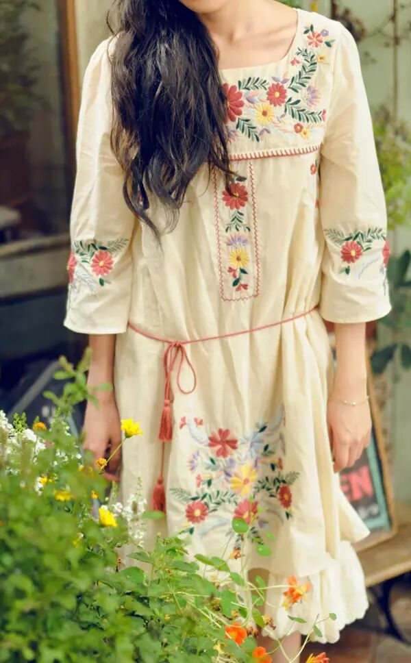 为什么民族风这么厉害?原因很简单,这三个字集上述所有核武器杀伤力之大成,无论是本土民族风,还是北欧/热带异域民族风,多数都是松松垮垮的长衣服长裙(好点的给你带个抽绳让你多少还有个腰围),辅以大量刺绣,花纹,或是镂空流苏,图案除了具备以上几点全部的杀伤力之外,样式还极其古旧,能穿好看的不是杨丽萍,就是杨二车娜姆。