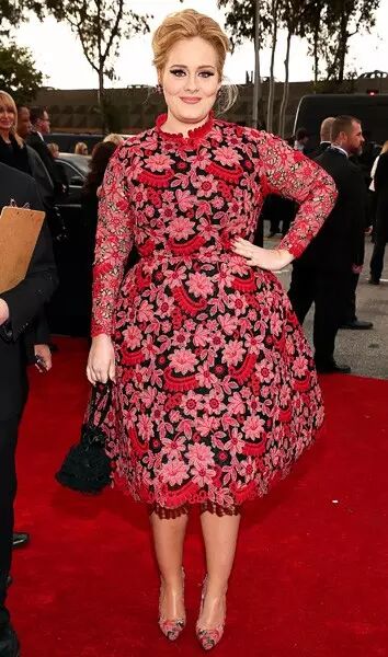 可能会有略微丰满些的妹子表示不服:直筒裙遮肉啊!这位妹子你听我讲,越是有肉,你越要穿有腰身的衣服硬掐出个腰,掐出个微胖款的风姿绰约。给你们看看阿黛尔是咋做的: