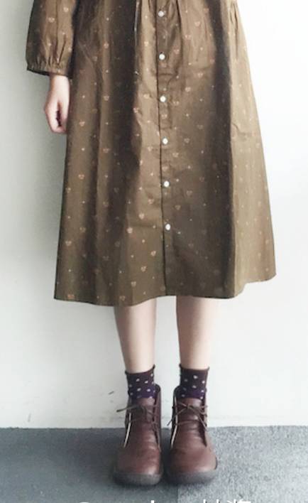 在之前提到过的生活美学大背景下,编织长筒袜和粗线的堆堆袜,就成了很多森女的居家旅行必备单品。在森女的世界里,棉袜可以说是大有作为:配运动鞋,配牛津鞋,马丁靴或者是其他款式的牛皮圆头靴子,这些都不稀奇,但是穿高跟鞋和凉鞋时都能露出一截棉袜的花边,这就有些令人叹为观止了。本来裙子就长,又穿了一双中筒袜,中间露出半截腿,想不显粗都很难啊!