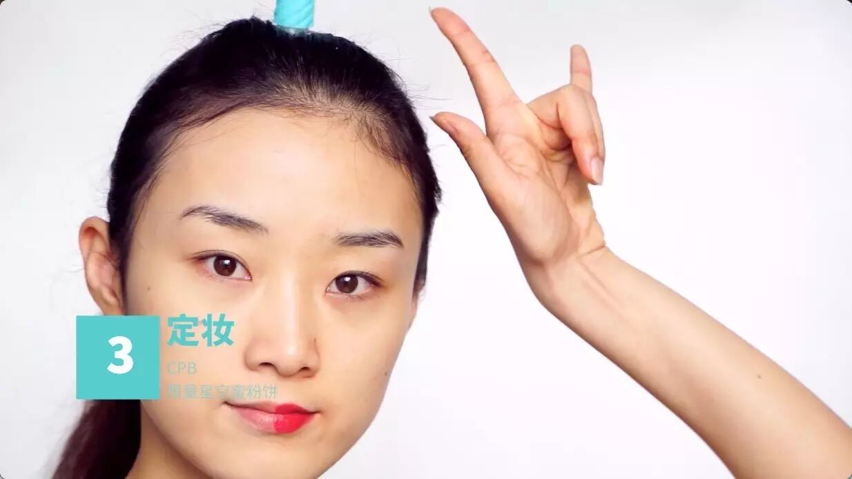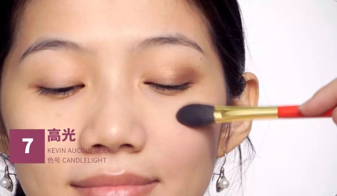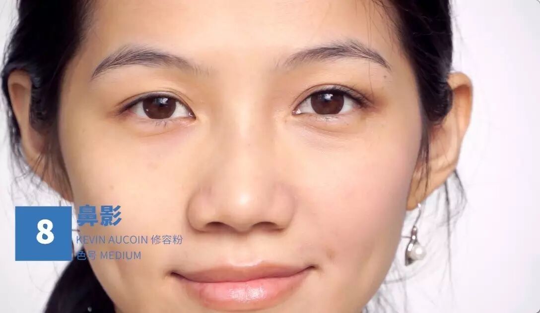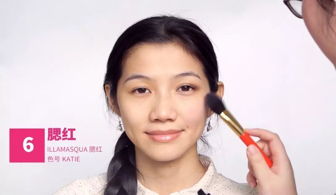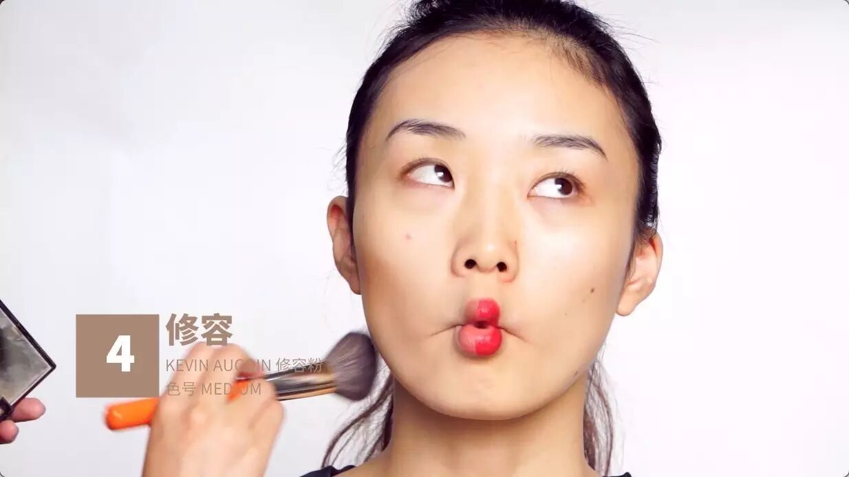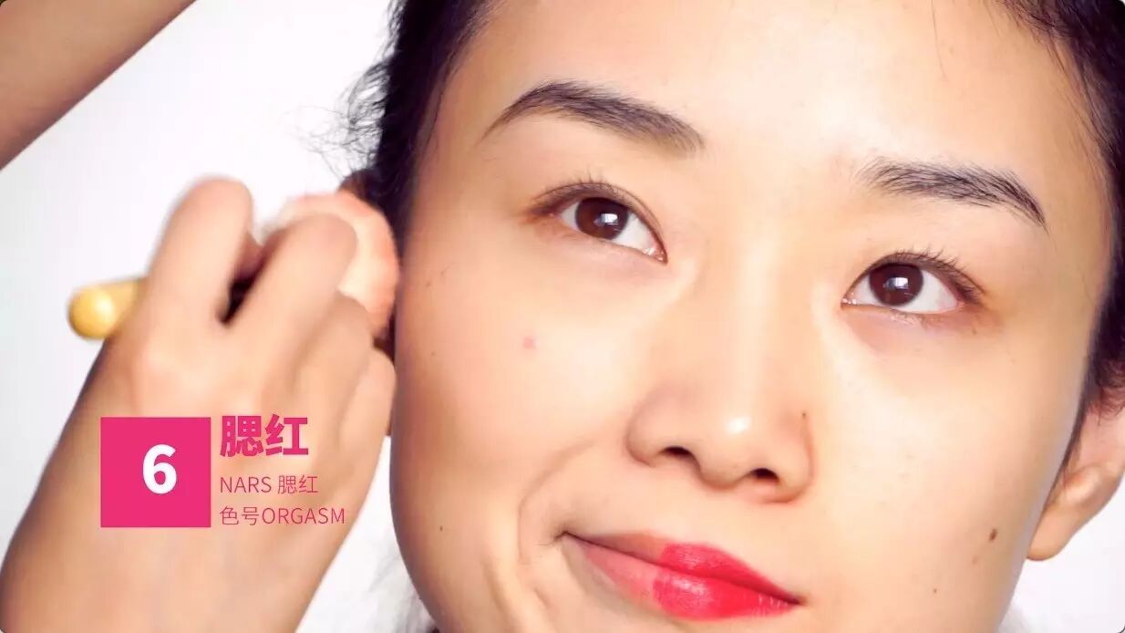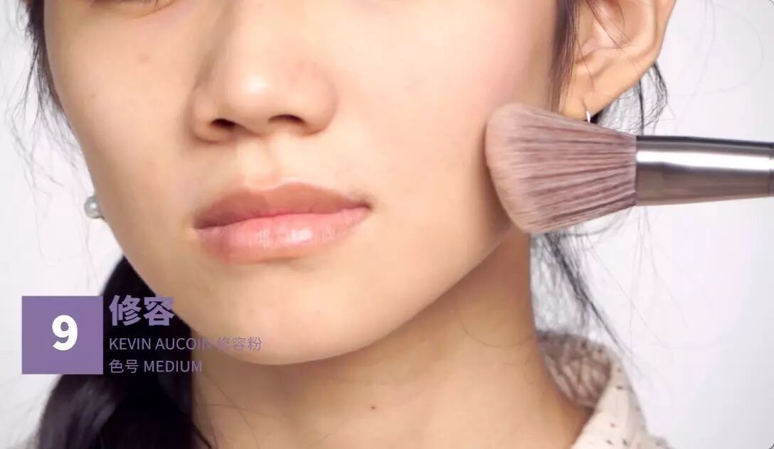 上修容(修容、腮红、眉毛这些顺序随意)。
