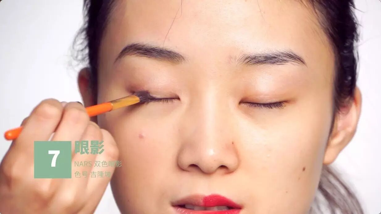 眼线。如果睫毛不够浓密,记得把睫毛根的缝隙先填满~眼线也可以用深色眼影替代。