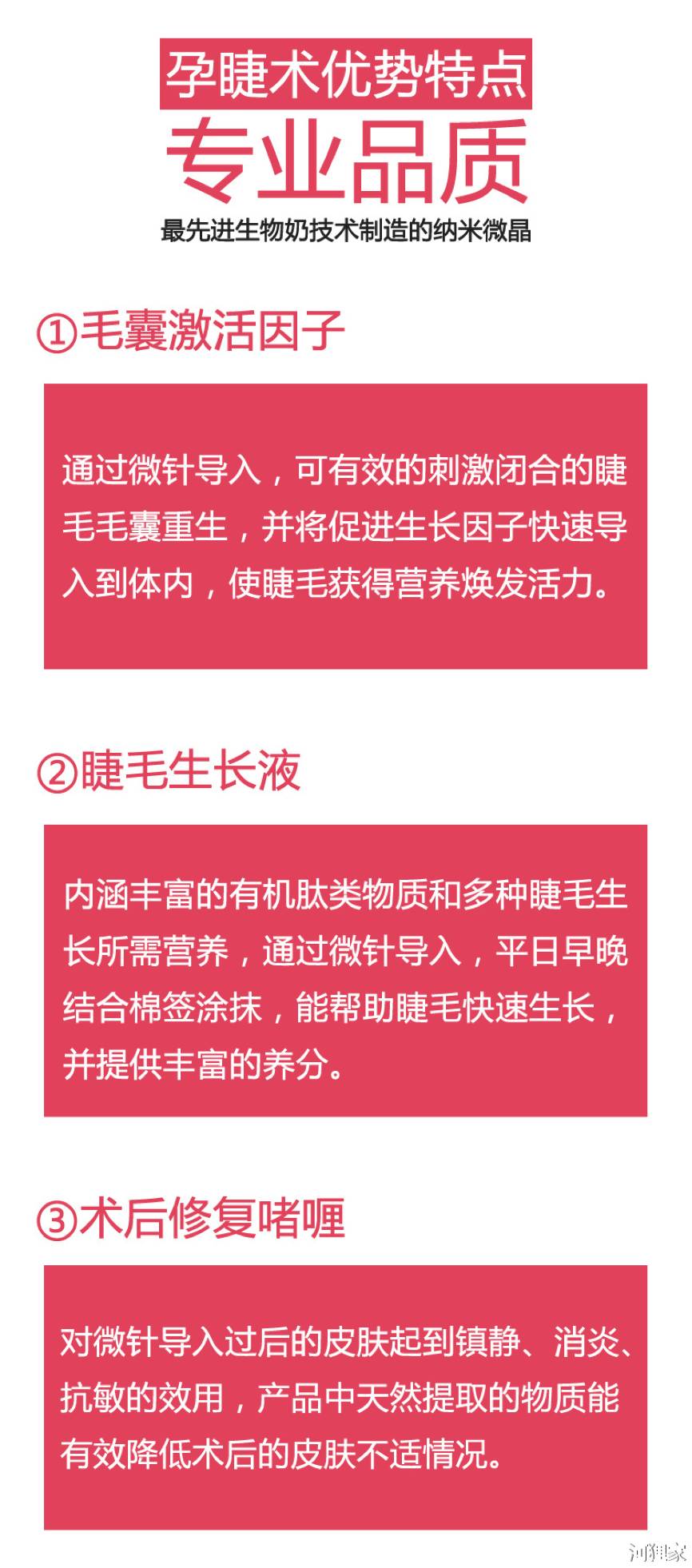 近年来,上面提到的比马前列素用于促进睫毛生长倒确实见到了一定的临床效果,但也仅限于凝胶制剂直接外用,根本没有“孕睫术”中的所谓操作,而且这些商家给出的所有配方,也都没经过任何科学验证。
