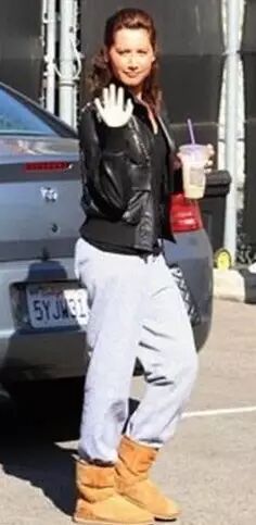正常UGG还有一种冬天很流行的穿法——灰色卫裤配UGG,邋遢,臃肿,即使腿长一米三,看上去也像是一头直立行走的大象,和时尚完全绝缘。