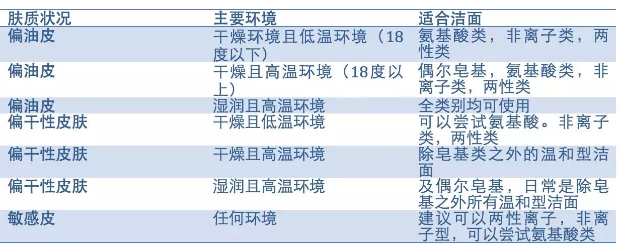 洁面的选择需要综合几项因素:地理位置,主要活动环境,肤质状况等。