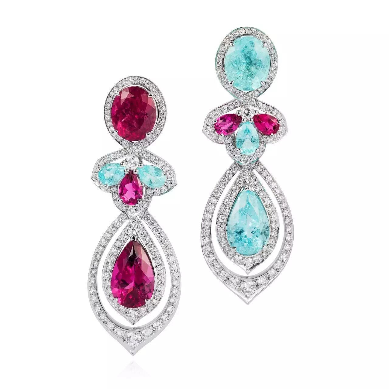 帕拉伊巴、卢比来不对称耳环,图片来源:the jewellery editor