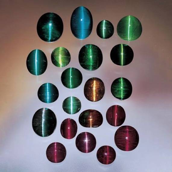 各种颜色的碧玺猫眼,图片来源:GIA