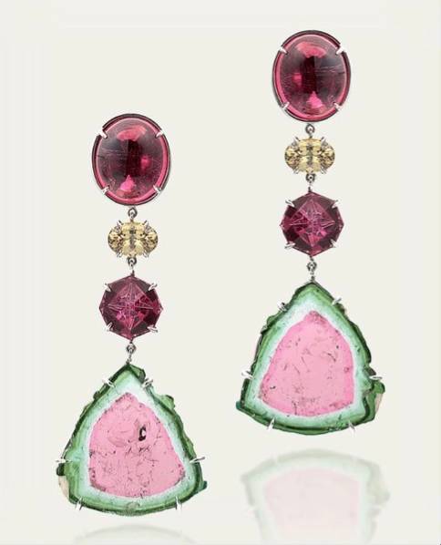 卢比来、石榴石、西瓜碧玺耳环,图片来源:tamsenz.com