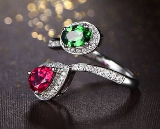 红、绿碧玺戒指,图片来源:1stdibs