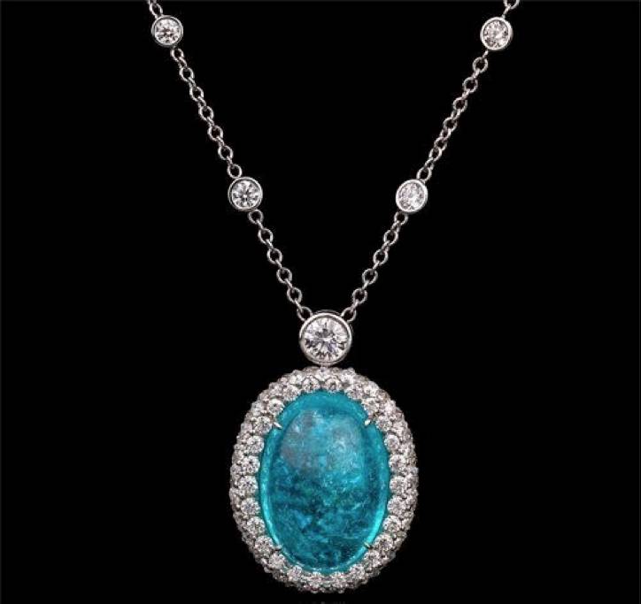 帕拉伊巴颜色夺目,无论做配角还是主角都是一样出色。大克拉的一颗配上钻石做成吊坠简直完美,宝石款式可以选择素面或者刻面的。相对于刻面的璀璨耀眼,素面则更增添了一些神秘内敛的感觉,让人想起蓝蓝大海碧波荡漾。