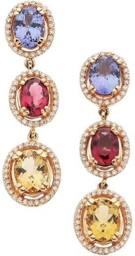 坦桑石、红色碧玺、黄色碧玺耳环,图片来源:HeritageAuctions