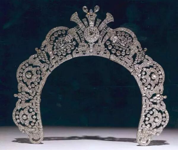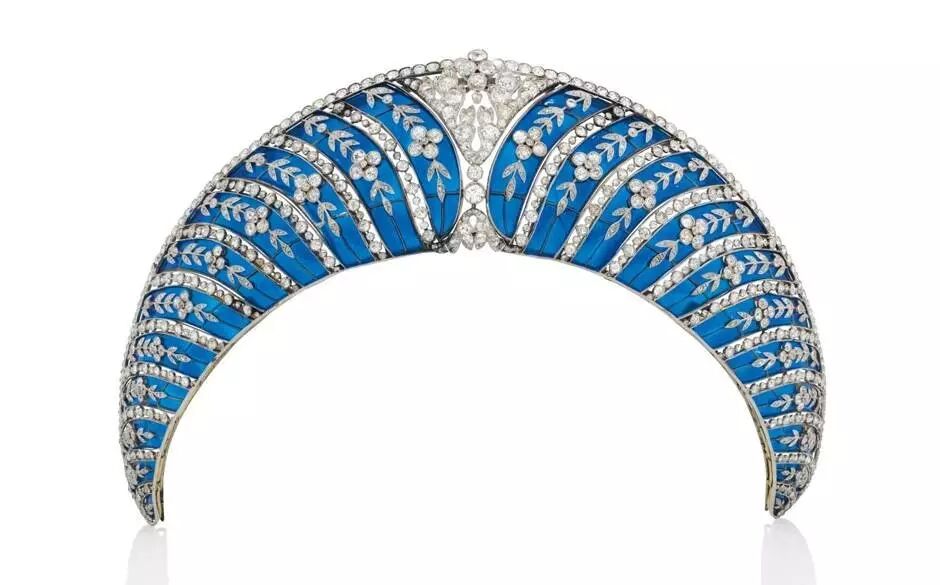 还有一顶仿俄国头饰Kokoshnik的,是Chaumet做的。这顶在2015年11月拍卖掉了,成交价$677,899。而1911年约瑟夫·尚美为第二任公爵和他当时的妻子做的这顶冠冕,只花了£375。
