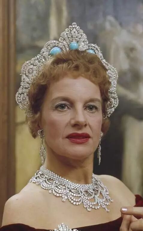 但是家族在1959年6月把它卖给了珠宝商Harry Winston,HW拆下了中间三颗大钻石,改成了戒指。之后,冠冕到了美国人Rose Movious Palmer手里,换上了三颗绿松石。