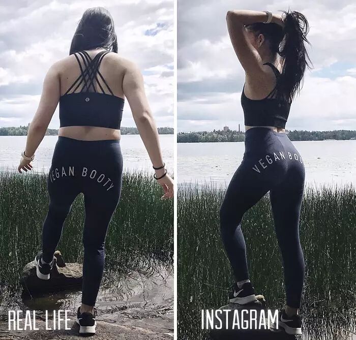 萨拉·普赫托(Sara Puhto)是一名20岁的健身博主,她发出了一系列并排的图片,揭示了如何在一张照片中调整出凹凸有致的曲线和平坦坚实的小腹,你不需要改变自己,只需改变照片就好。