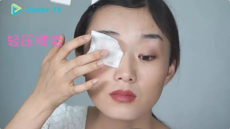 3.化妆棉敷在眼睛上几秒钟,眼影、睫毛膏和假睫毛胶水松脱之后轻轻抿掉,再慢慢清理。