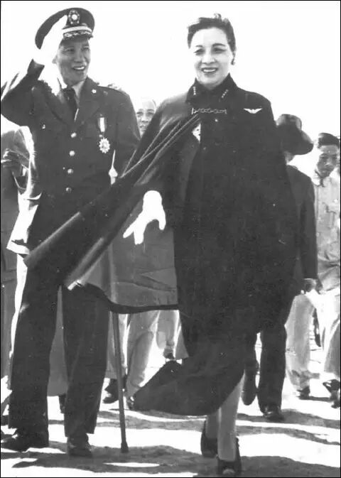 剧中这种穿法呢反而比较像老蒋的老婆宋美龄,穿斗篷还走路带风啊有木有!前面会装饰一条链子,还会佩戴空军徽章,炒鸡拉轰!
