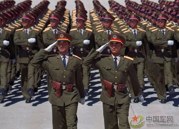 在这张剧照就可以看到边上的仪仗队,哦不,小兵们头上戴的虽然不是平顶帽,而是一种虽然也在我军历史上出现过但是在是和我们黄种人颜值八字不合给咔擦掉的船形帽。