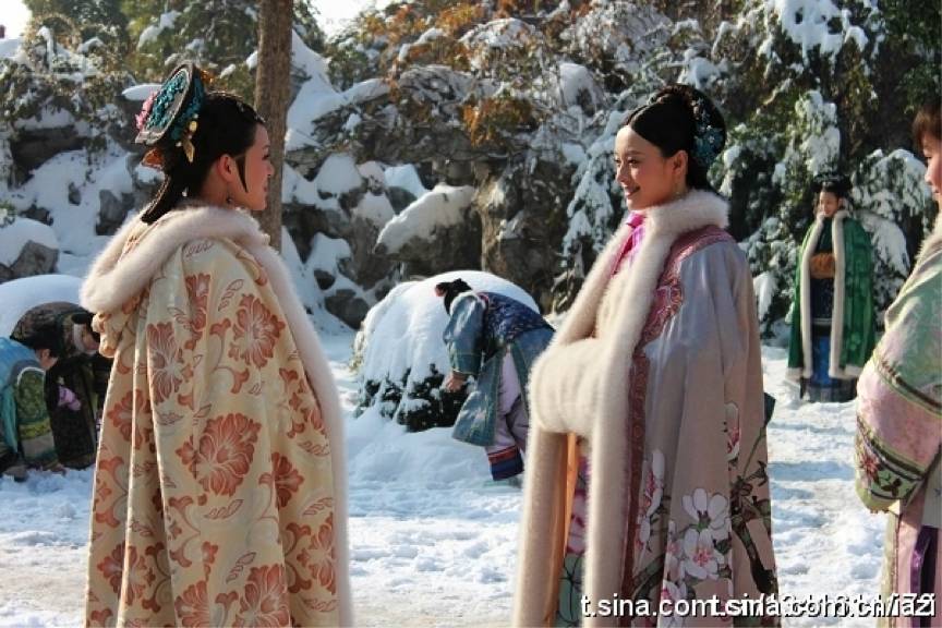 后来把斗篷套上的样子,也是有毛领的斗篷。