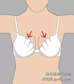 过大的钢圈无法贴合乳房外缘,相当于没穿,对乳房组织没有足够的承托力。过大的钢圈有两种特征: