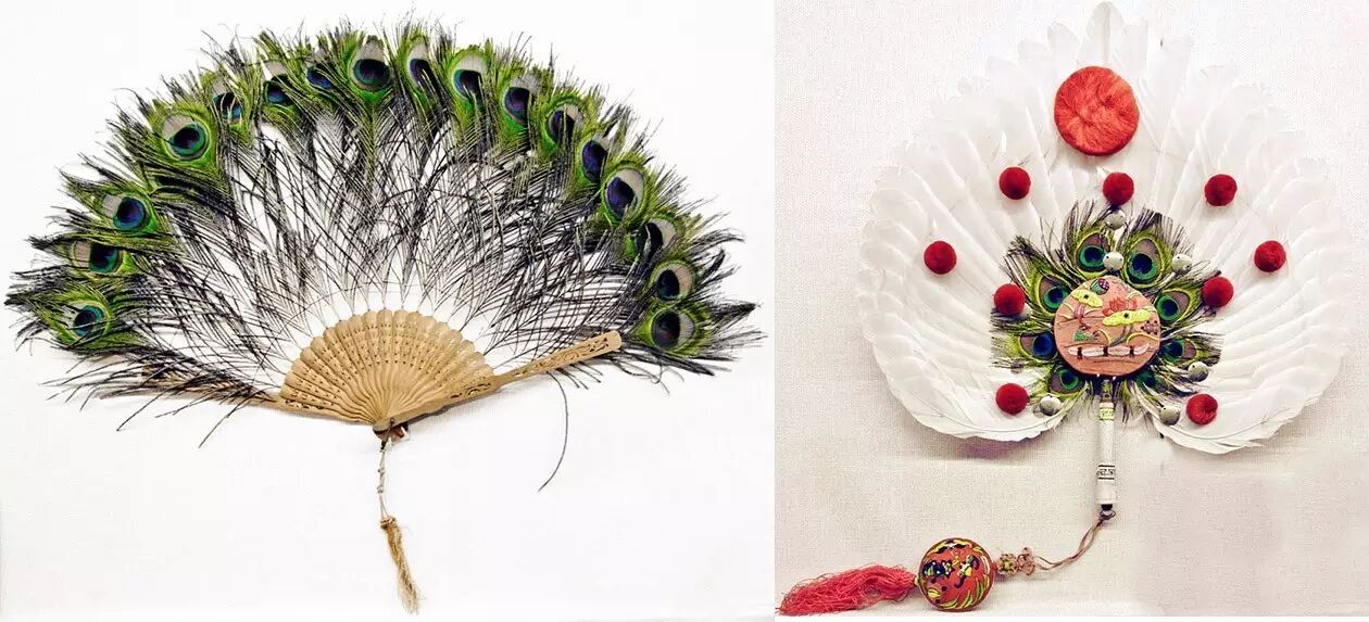 “孔雀羽”折扇;白羽毛扇(鹅毛)。