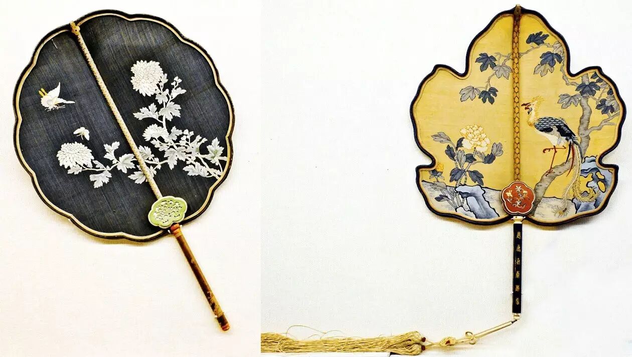不透明料子制成的团扇,则使用缂丝、绣花等手法做成花鸟题材,或富贵雍容,或浓郁大方。
