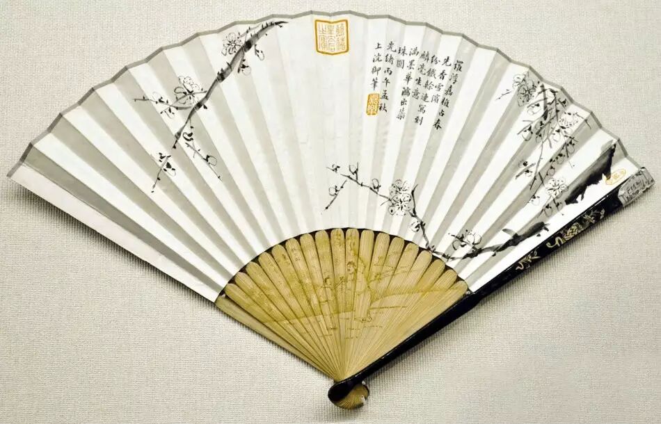 和我们一般认为清代追求花哨、明代则简约大气不太一样的是,明代的折扇大量使用金色和黑色。当然,你要相信明朝人的品味,这金色和黑色也是搭配得一点儿也不俗气哦!