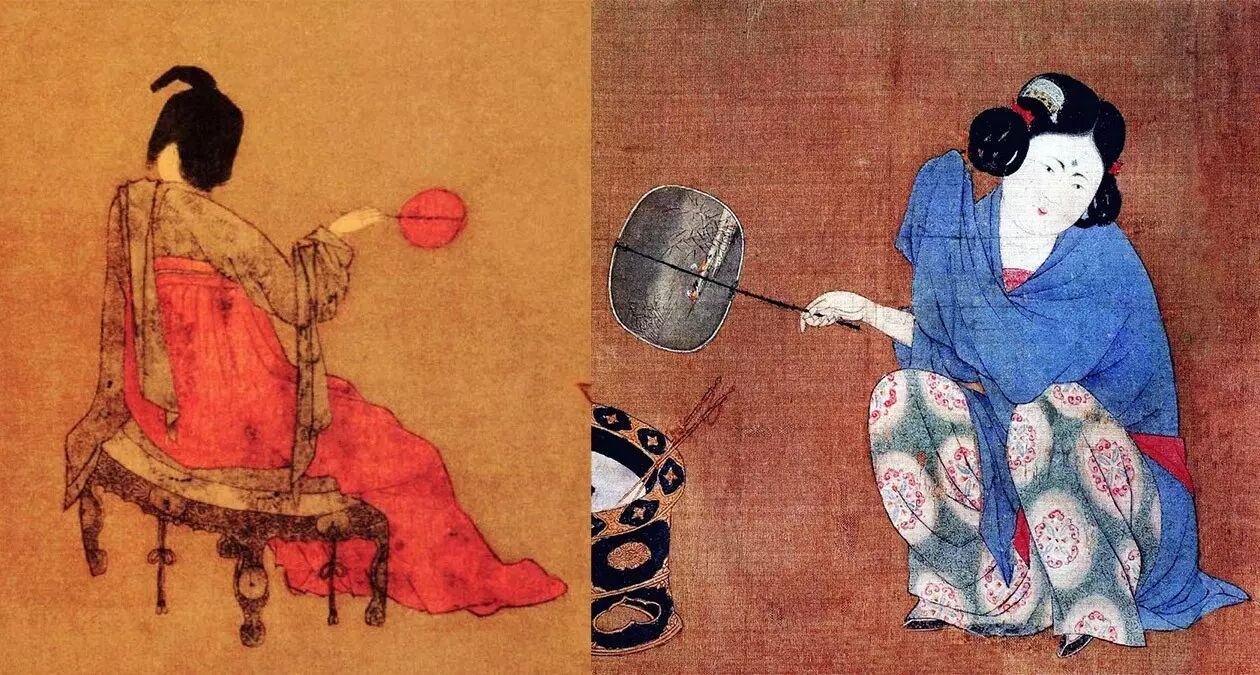 贵人仕女们拿的扇子小巧别致,而侍女手中的扇子更大,这点也可以从唐人画作上得到印证。