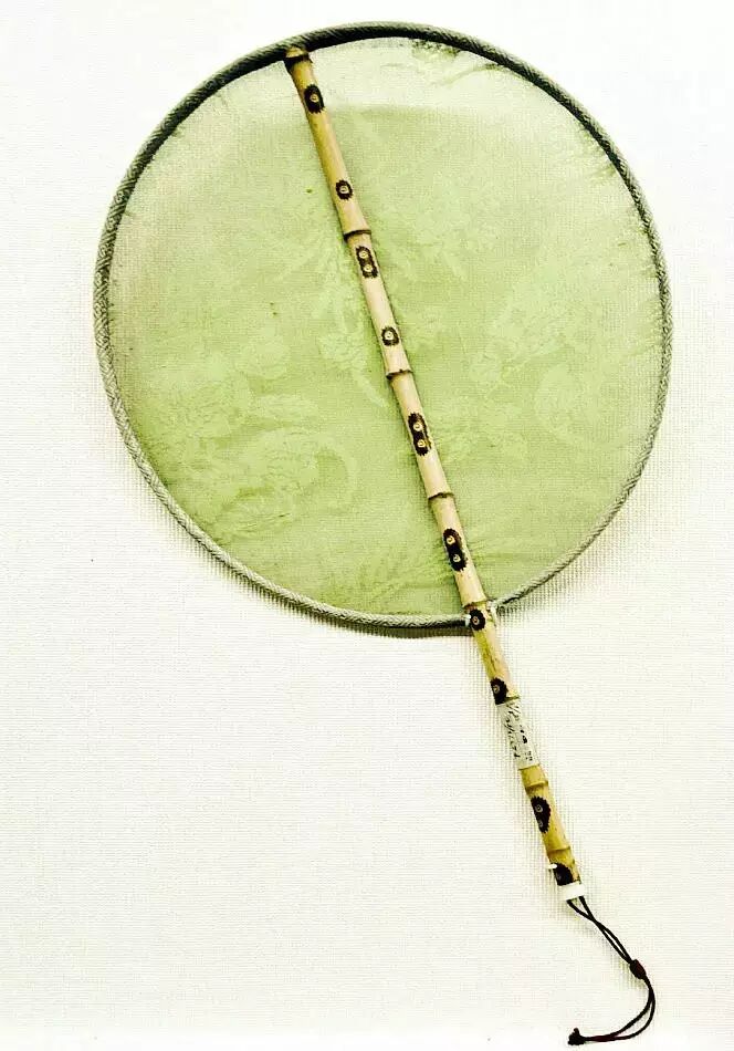 折扇没有普及之前,团扇也是男女通吃的。右边这柄扇子,是从一位南宋太学生墓里出土的,还刻了他的号“君玉”。这把扇子不仅是一把男性使用的团扇,而且还可以绕着扇柄旋转。在土里埋了七百多年,外表已经十分惨淡了,但是依然掩不住整体造型的精巧雅致,也没有一点脂粉气。